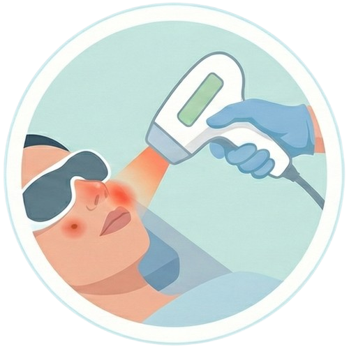 - 治療後は一時的に 赤み・かさぶた が生じます