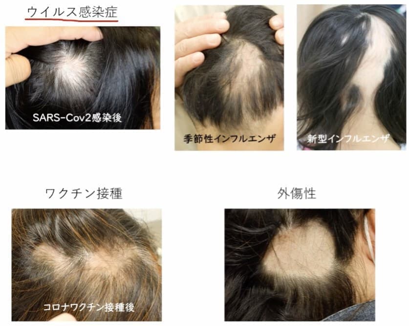 また、頭髪だけではなく、眉毛や体毛も抜ける(汎発型)こともあります。