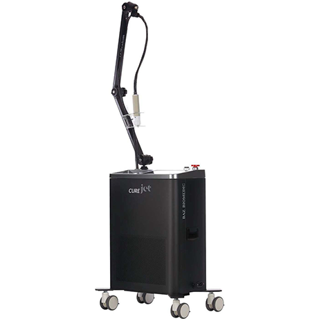 キュアジェットは、高圧ジェット噴射を利用して、針を使わずに薬剤を皮膚の奥(真皮層)まで届ける最新の治療機器です。