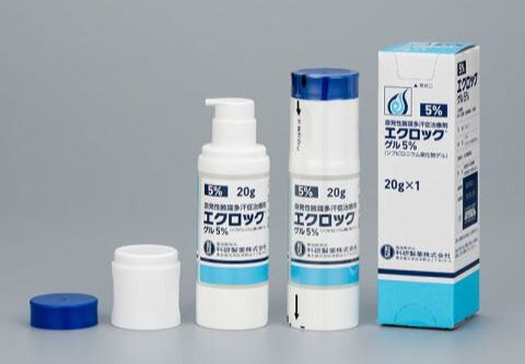 エクロック®ゲルは、2020年11月日本初の保険適応となった原発性腋窩多汗症用外用剤です。1日1回のワキへの塗布で高い効果を発揮します。当院で処方可能です。