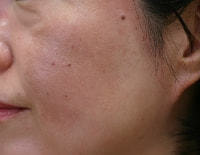肌が浅黒い人に出来易いシミです。頬骨を起点として境界がはっきりとせずに広めに生じてきます。妊娠時に濃くなることから女性ホルモンによる影響もあると考えられていますが、洗顔時のこすり過ぎが一番の原因と考えられます。